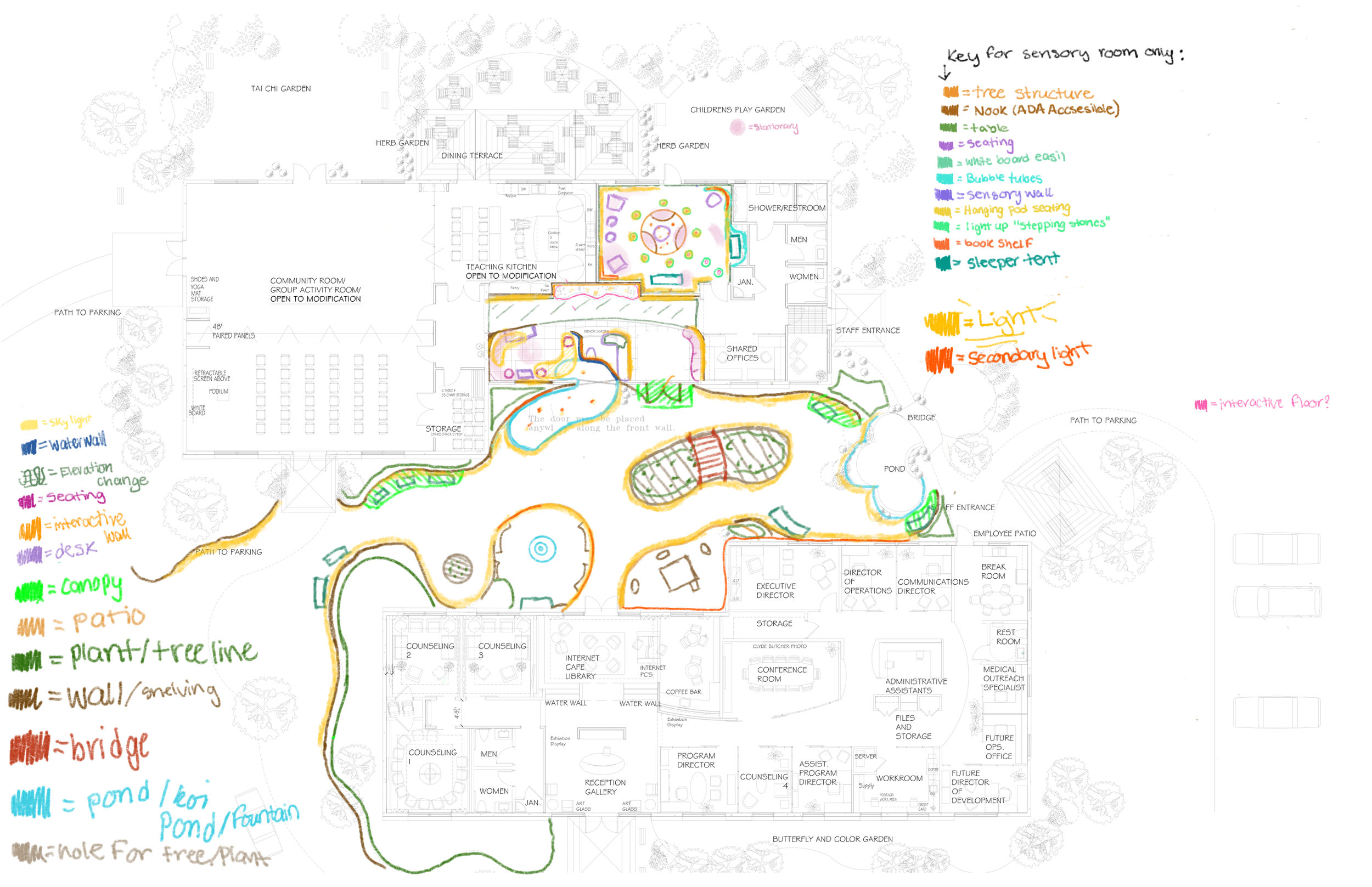 In Environmental Wayfinding, students were tasked with redesigning a children’s wellness center, with a focus on how light can shape emotion and encourage interaction. Guided by a “Light As” prompt, this project explores light as both a guide and a healer, using it to create an environment that supports navigation, comfort, and emotional well-being.
